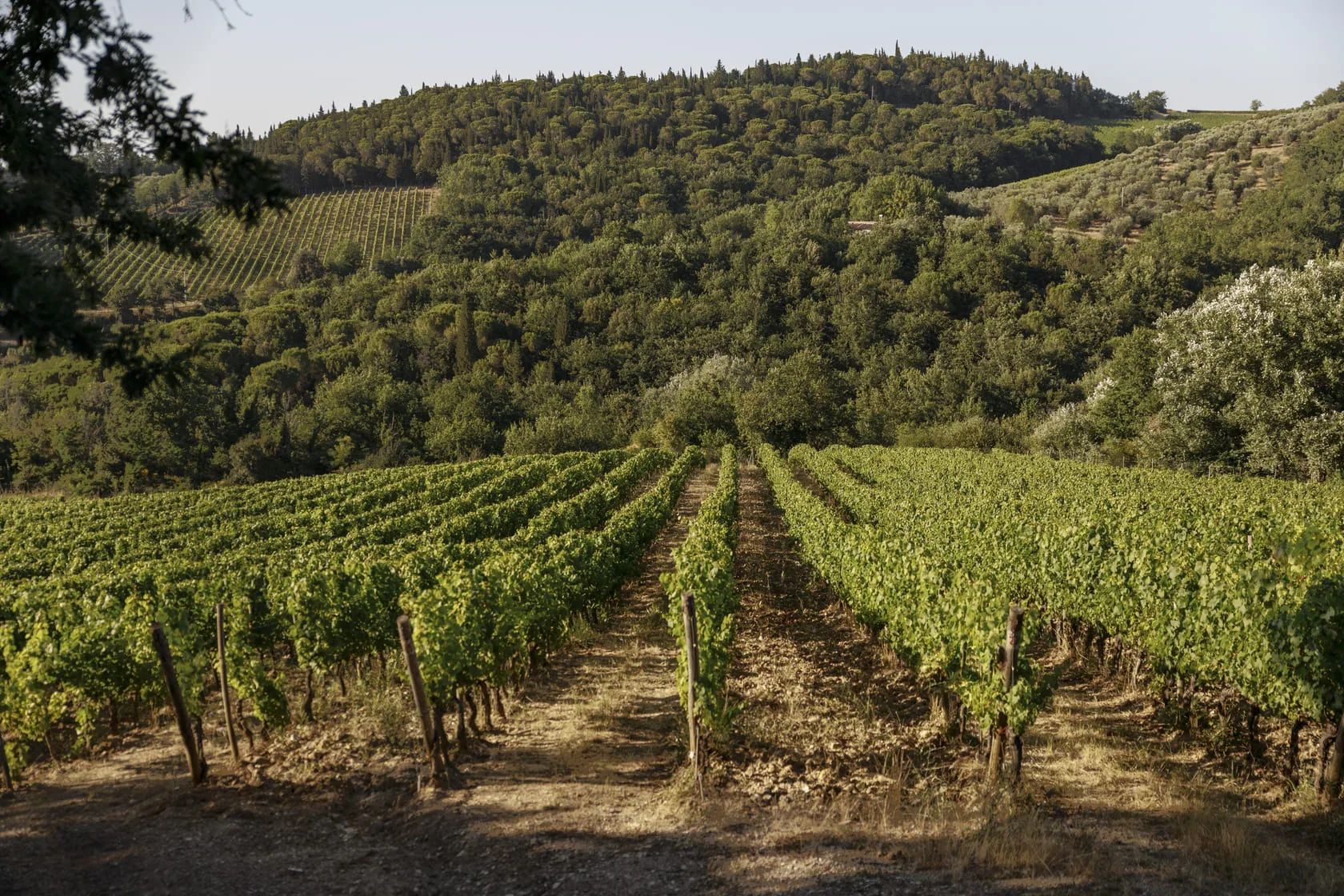 Fraschette (1989) — 0.83 ha, Galestro-limestone soils, Sangiovese, at altitude (420–440 m). The first vineyard planted under the Chianti Classico 2000 programme, with clones selected for exceptional quality and longevity.